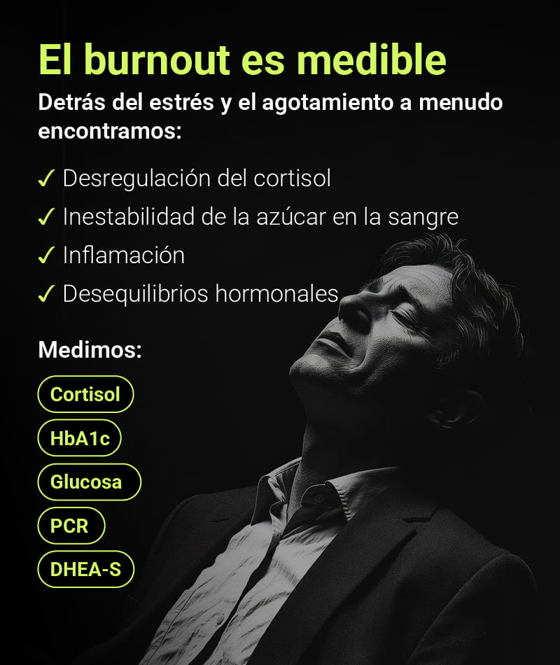 Medimos lo que realmente impacta en tu salud: sistema cardiovascular, órganos vitales, hormonas, metabolismo, inflamación, marcadores clave de estrés, etc; es decir, una radiografía biológica completa.